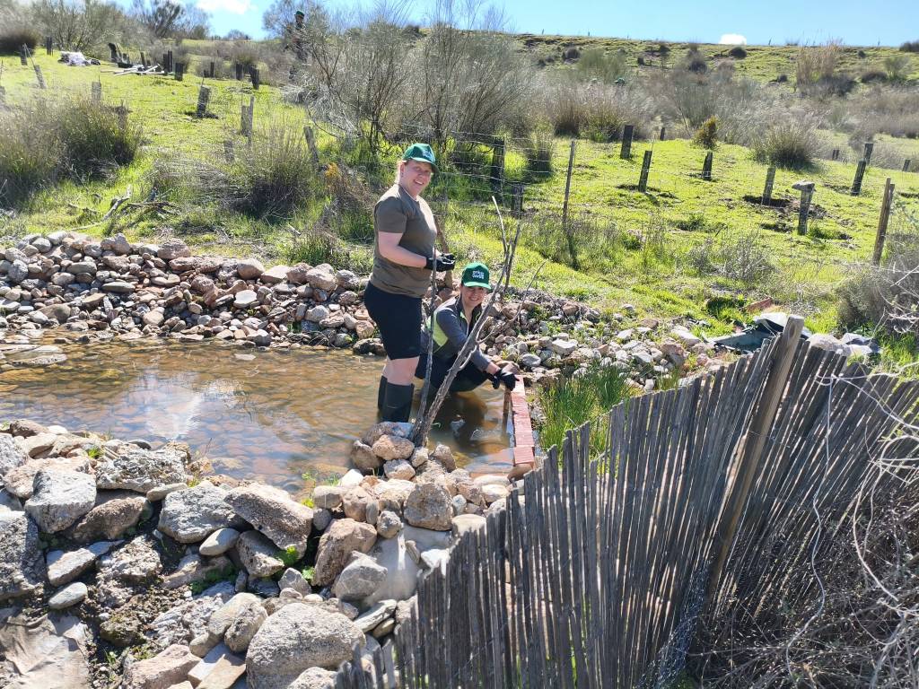 - Línea Charcas Temporales Mediterráneas-Anfibios. La charca que creamos con este equipo hace unos años ya esta operativa, una muestra es que ya es el segundo año en el que se registran puestas de sapo corredor, la especie “bandera” de este ecosistema. Pero, aunque la charca ya este “funcionando” no implica que no requiera algunas mejoras continuas. En este caso, un refuerzo de su valla perimetral y la instalación de un nivel para facilitar conocer la cantidad de agua que tiene.